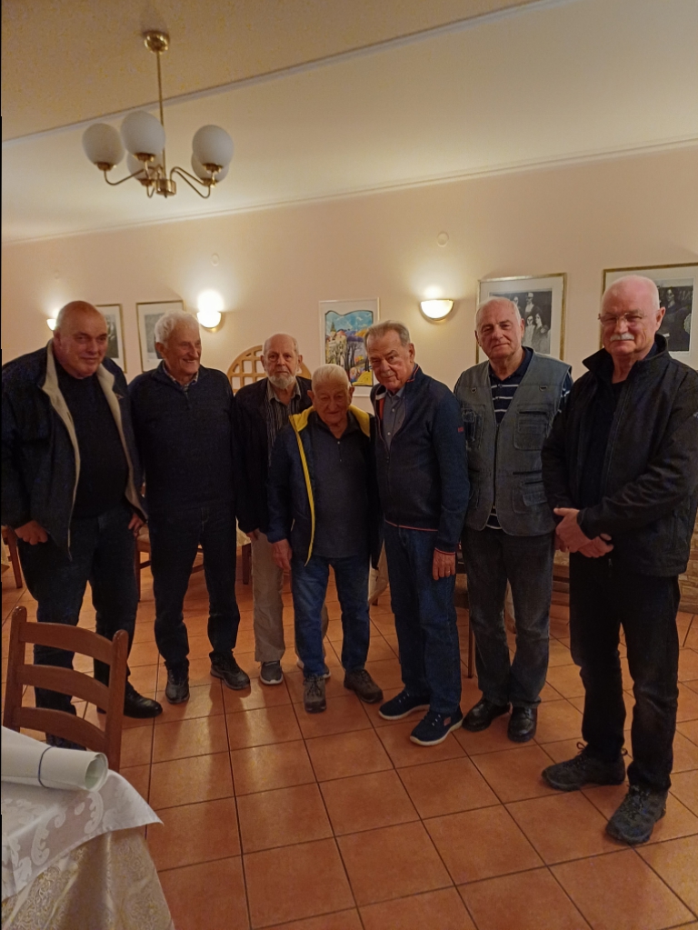 Udeleženci z leve proti desni: Zvone Kelher, Rafael Mokorel, Ivan Marc, Vito Berginc, Alojz Rejc, Drago Vidrih in koordinator srečanja Jože Abramičič
